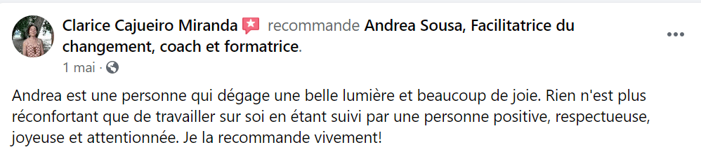 Je suis Andrea Sousa, coach professionnel en développement personnel près d’Albi. Experte aguerri et certifiée, je mets à disposition tout mon savoir-faire pour les personnes qui souhaitent relever le défi du développement personnel et professionnel.